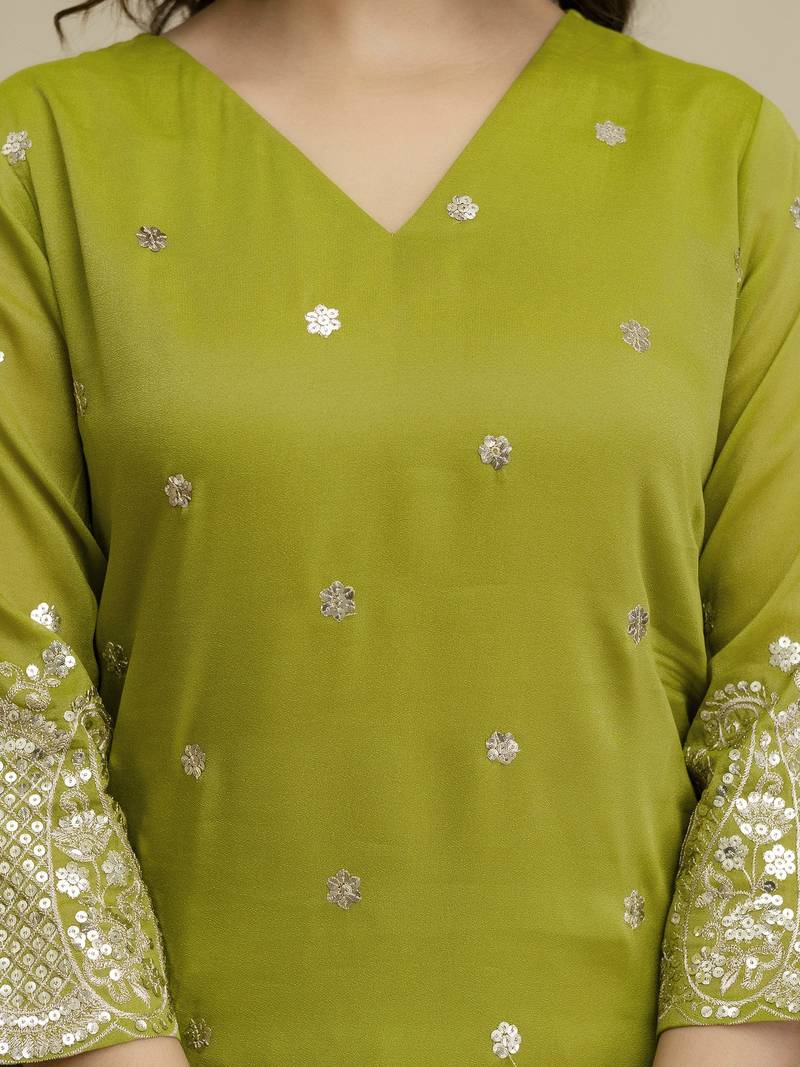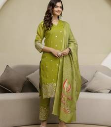 Green mehendi look art silk embroidery sequence work salwar suit set kurta pant with dupatta stitched