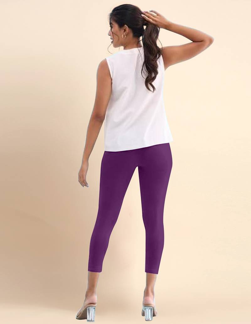 Berrypurple microfiber elastane stretch soft cropped leggings with ultrasoft waistband