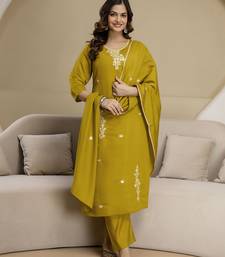 | Product Name | Mustard Chanderi Thread Embroidery Readymade Suits | |