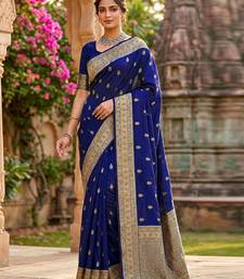 Navyblue jaquard silk woven zari work traditional saree with unstitch blouse