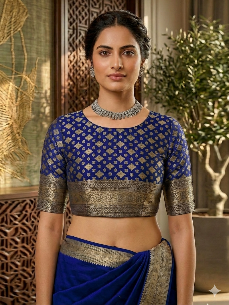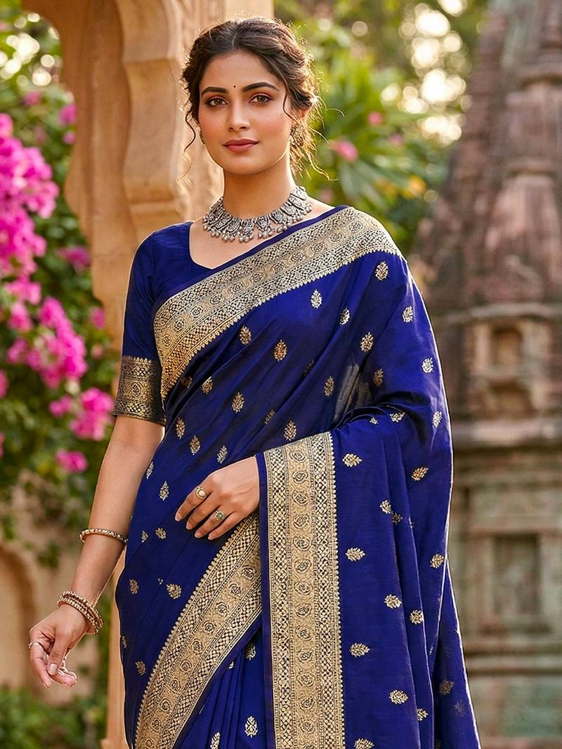 | Product Name | Navyblue Jaquard Silk Woven Zari Work Traditional Saree With Unstitch Blouse | |