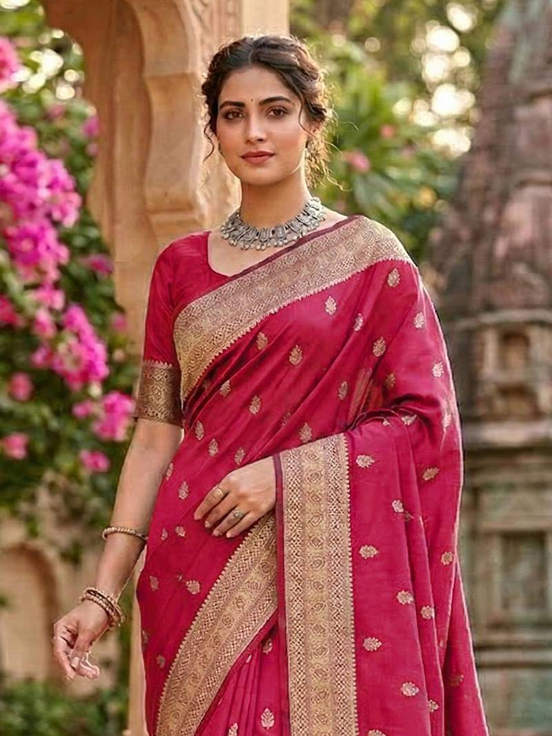 | Product Name | Pink Jaquard Silk Woven Zari Work Traditional Saree With Unstitch Blouse | |