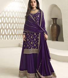 Purple jaquard silk embroidery sequence work kurta palazzo with dupatta stitched