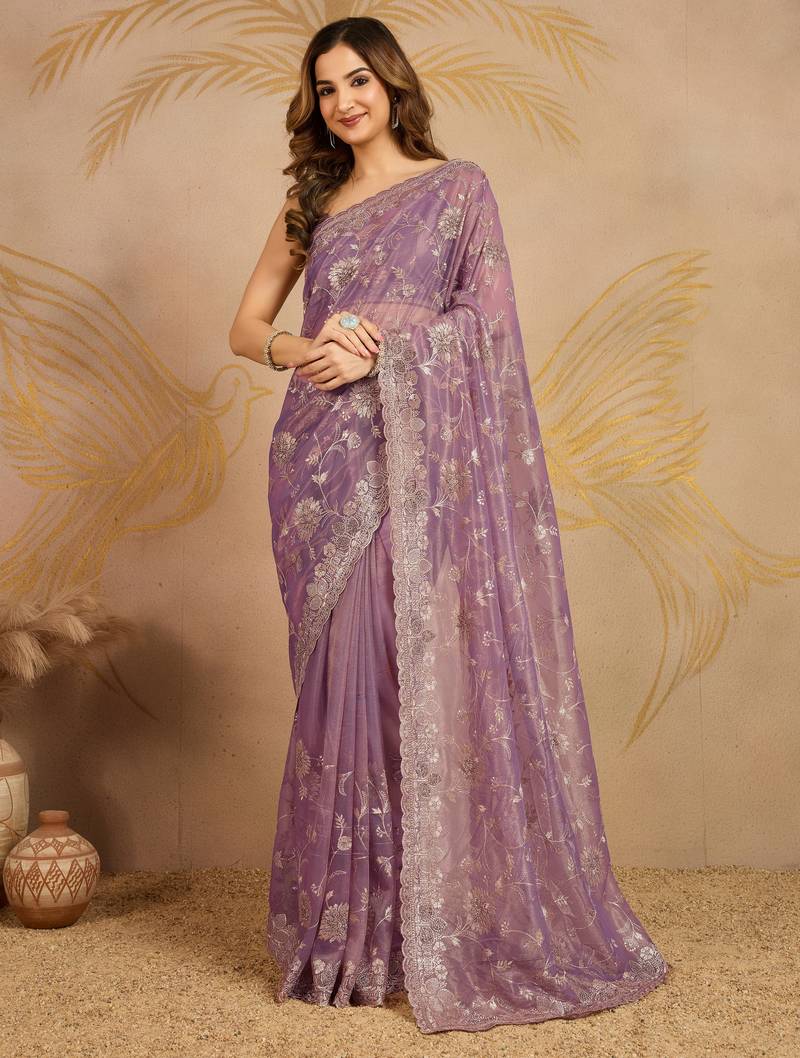 Product Name | Trendmalls Purple Soft Net Embroidery Saree With Unstitched Blouse | |
