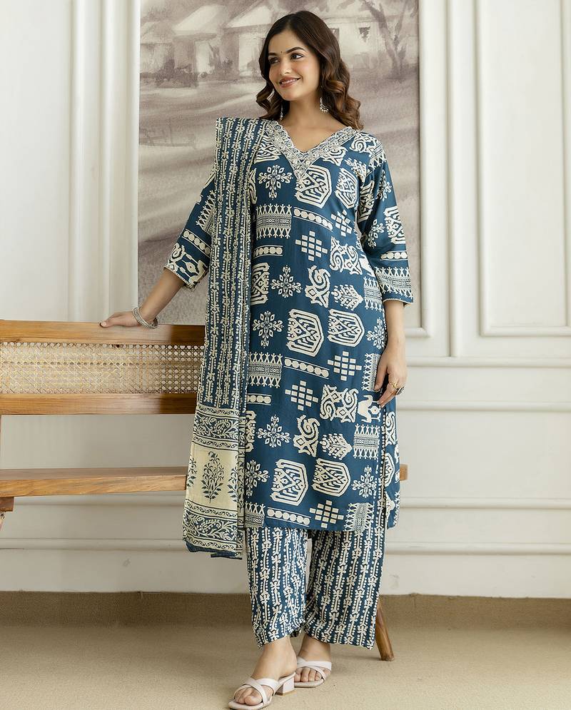 | Product Name | Teal Blue Cotton Thread Embroidery Readymade Suits | |