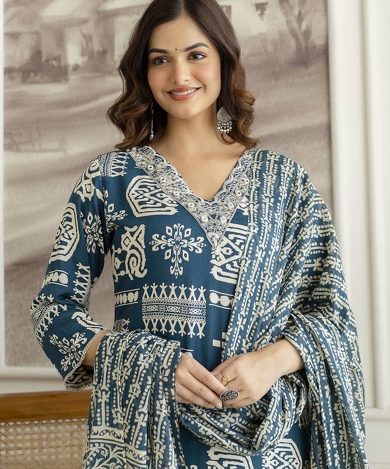| • | Dupatta | : | Color- Teal Blue / Fabric- Cotton |