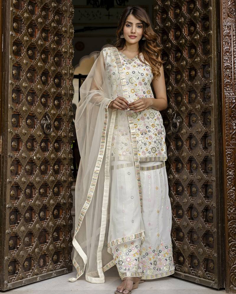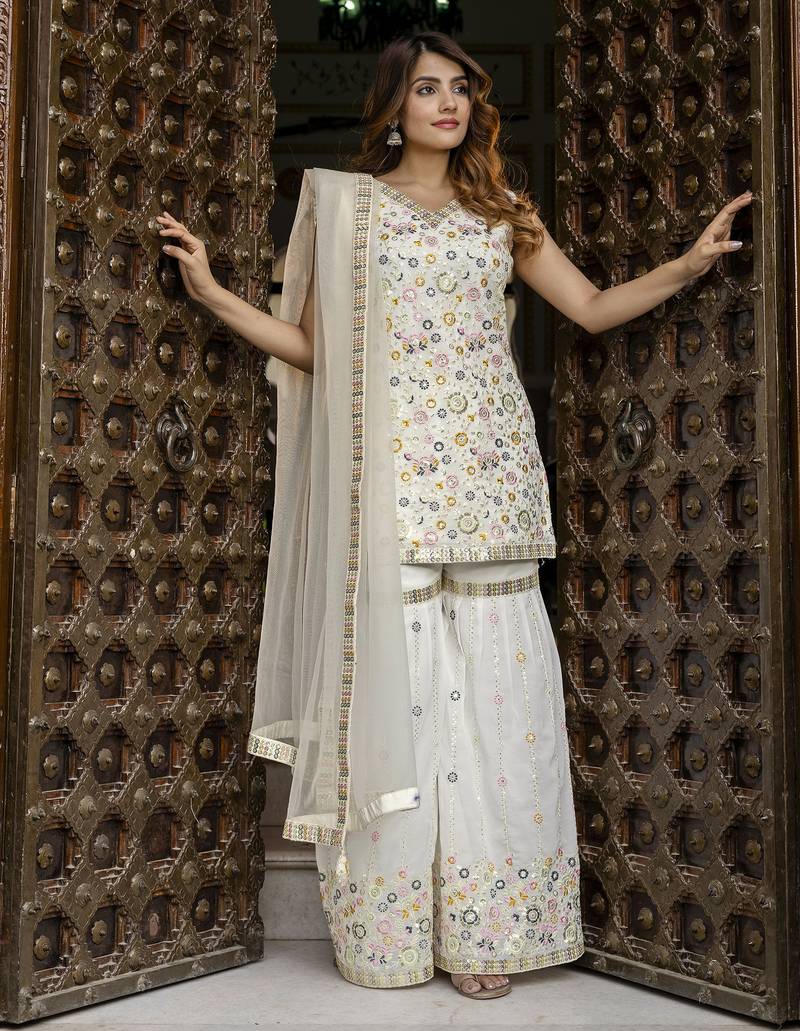 Product Name | Georgette Embroidery Work Kurta Sharara Set With Dupatta Kurta Set For Women | |