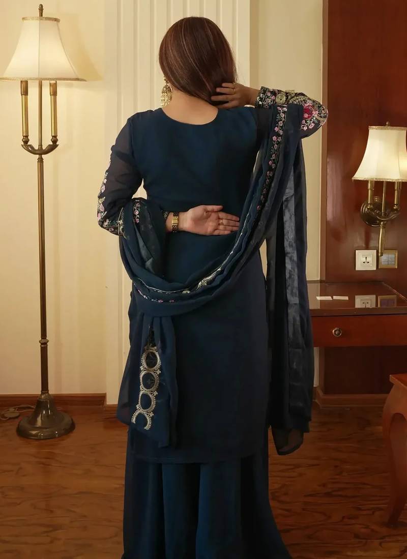 | Product Name | Women's Georgette Traditional Motiff Embroidered Kurta Palazzo With Dupatta Set | |