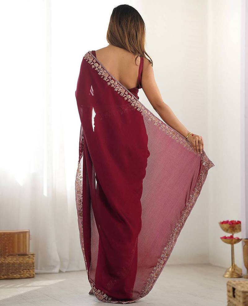 Embrace Timeless Elegance With This Rose Red Rangoli Silk Saree, Designed To Make You Stand Out At Any Occasion. Featuring A Delicate Embroidered Floral Border, It Adds A Graceful Charm To Your Traditional Look. The Soft And Lightweight Rangoli Silk Drapes Beautifully, Ensuring Comfort With Every Step. Perfect For Festive Events, Parties, Or Wedding Functions. Pair It With Statement Jewelry To Complete Your Ethnic Ensemble. A Classy Addition To Your Wardrobe For Every Celebration.Rangoli Silk Saree, Party Wear Saree, Designer Saree, Embroidered Saree, Zari Border Saree, Wedding Saree, Festive Wear Saree, Traditional Saree, Elegant Saree, Soft Silk Saree, Purple Saree, Fancy Saree, Stylish Saree, Saree With Blouse, Readymade Saree, Bridal Saree, Saree For Women, Indian Saree, Ethnic Saree, Silk Blend Saree