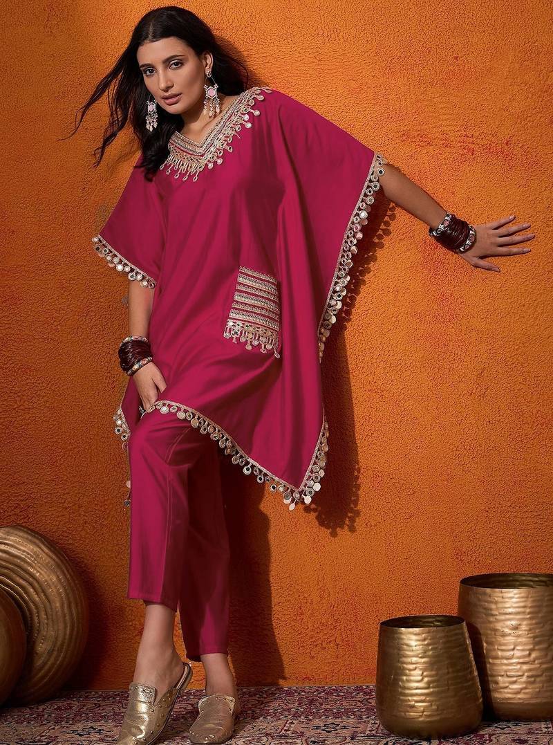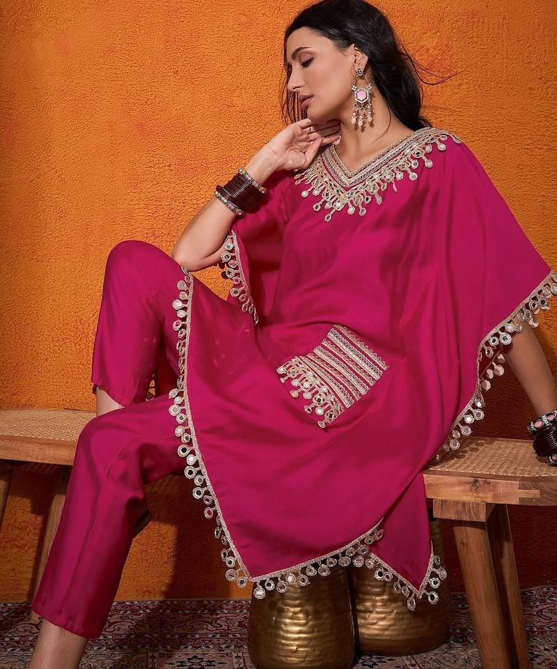 | Product Name | Women's Silk Mirror Embroidered Kaftan Kurta Pant Set | |