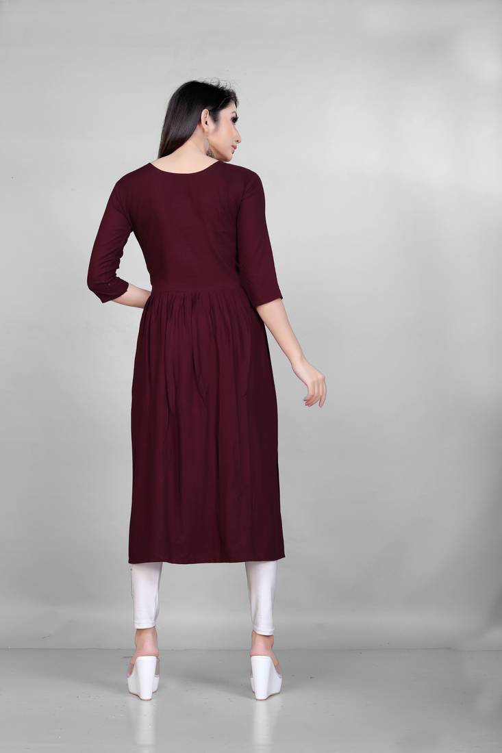 | Product Description | Trishiv Wine Color Embrodery Rayon Cotton Traditional Women Kurti |