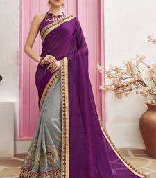 | Product Description | Triveni Grey & Purple Chanderi Silk & Georgette Party Wear Embellished Saree With Blouse Piece |