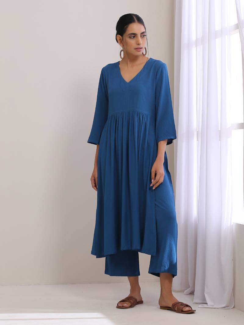 | Product Name | Classic Blue Dobby High Slit Gathered Kurta Set | |
