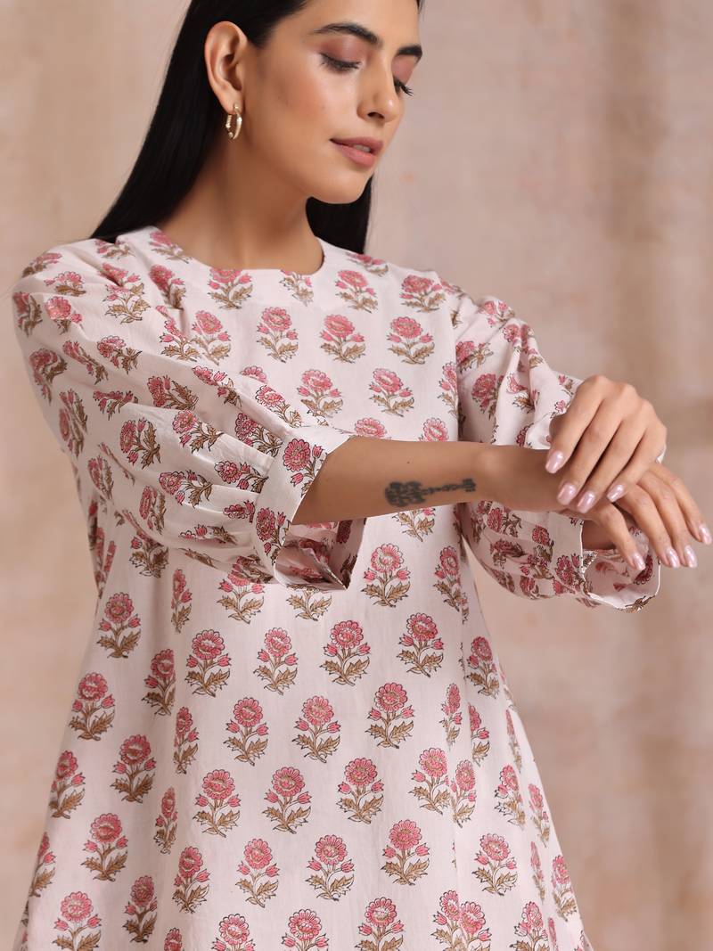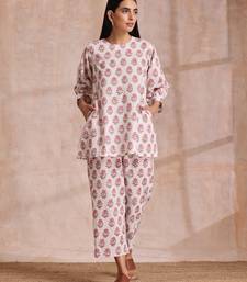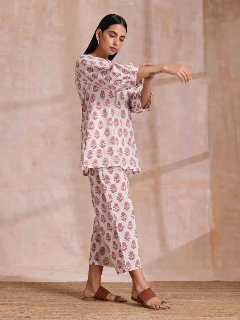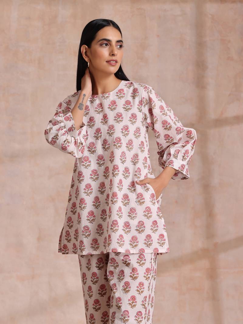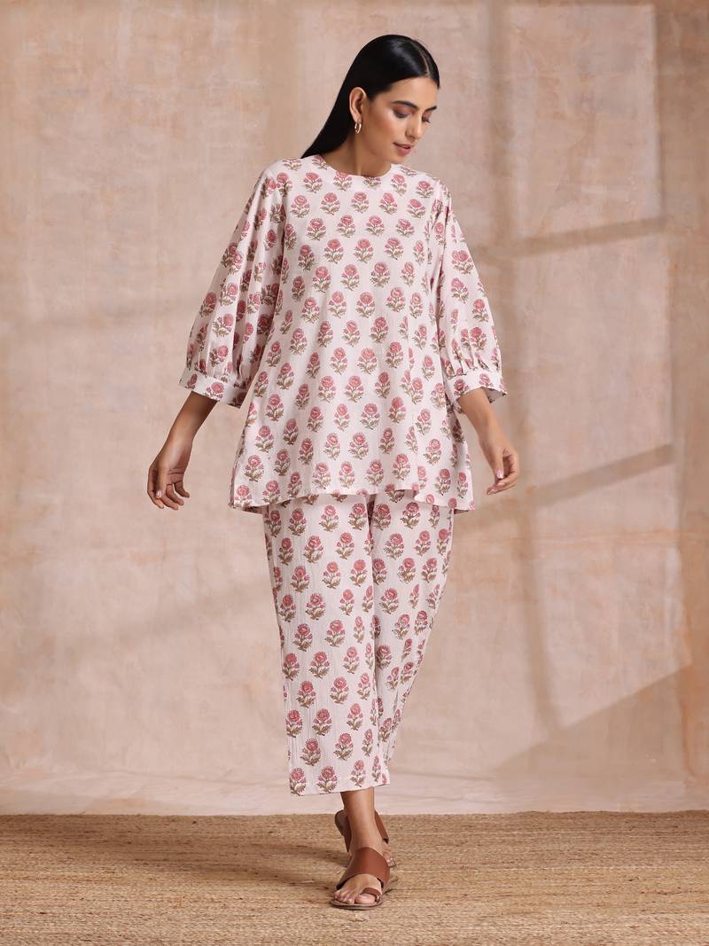 | Product Name | Pink Brown Buta On White Block Print Cotton Baggy Sleeve Co Ord Set | |