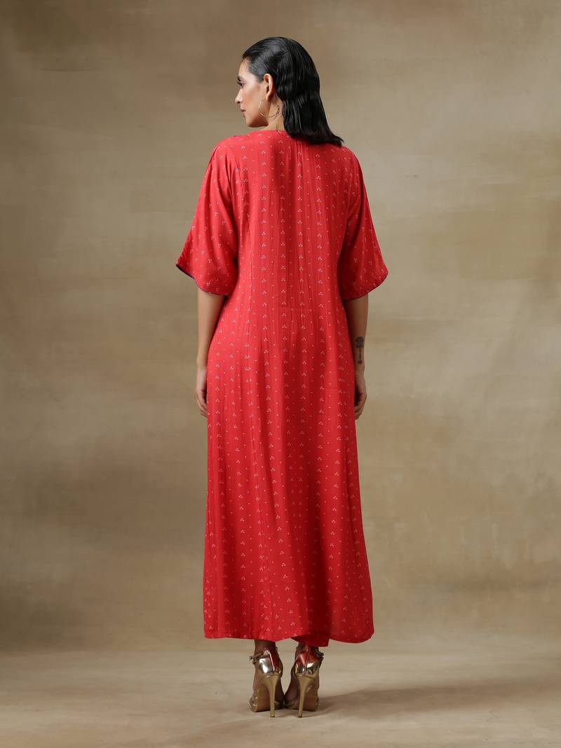 | Product Name | Red Bandhani Printed Silk Long Kurta Pant Set | |