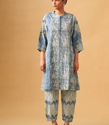 Elegant blue printed cotton kurta set for everyday sophistication stitched