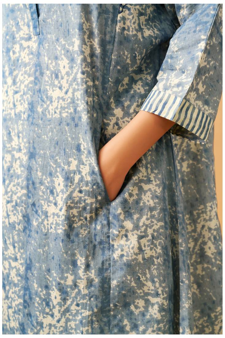 | Product Description | Designed In Soft, Breathable Cotton Fabric, The Indigo Kurta Set Offers Effortless Comfort With A Contemporary Ethnic Appeal. The A Line Kurta Features An Artistic All Over Print Complemented By Contrast Striped Detailing On The Sleeves And Front Placket, Adding Subtle Visual Interest. Paired With Coordinated Printed Haram Pants, This Set Ensures Ease Of Movement While Maintaining A Polished Daytime Look—Perfect For Casual Wear, Workdays, And Relaxed Gatherings. |