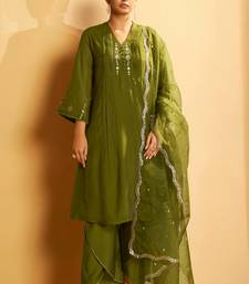 Olive green embroidered suit set with dupatta stitched