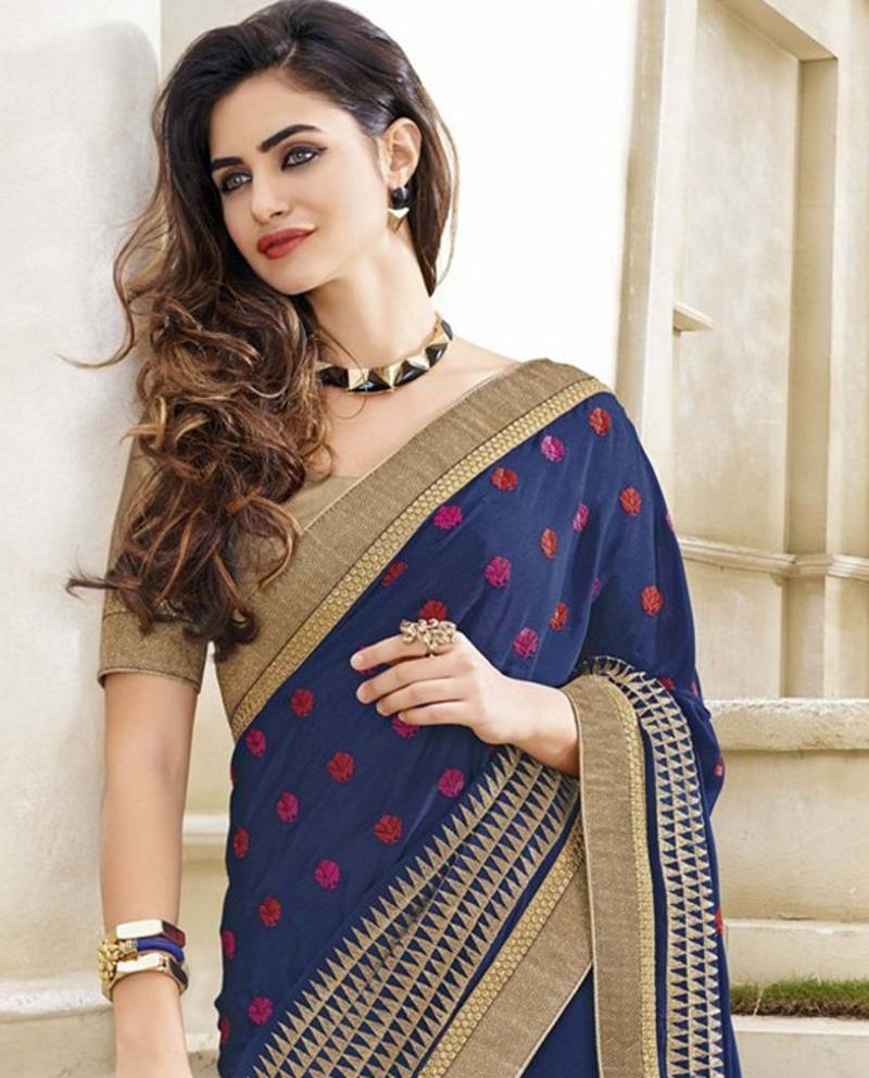 | Product Name | Blue Embroidered Satin Saree With Blouse | |