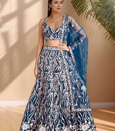 Astonishing blue sequins net party wear lehenga choli with dupatta