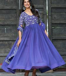 Attractive blue sequins georgette festive wear gown with dupatta stitched