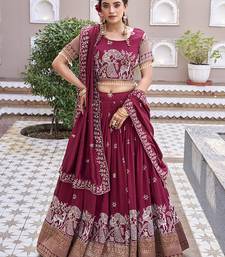 This Elegant Lehenga Choli Set Is Crafted From Premium Vichitra Silk Fabric With Rich Embroidery And Sequin Work. A Perfect Blend Of Comfort And Royal Style For Special Occasions.