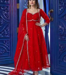 Captivating red sequins silk wedding wear gown with dupatta stitched