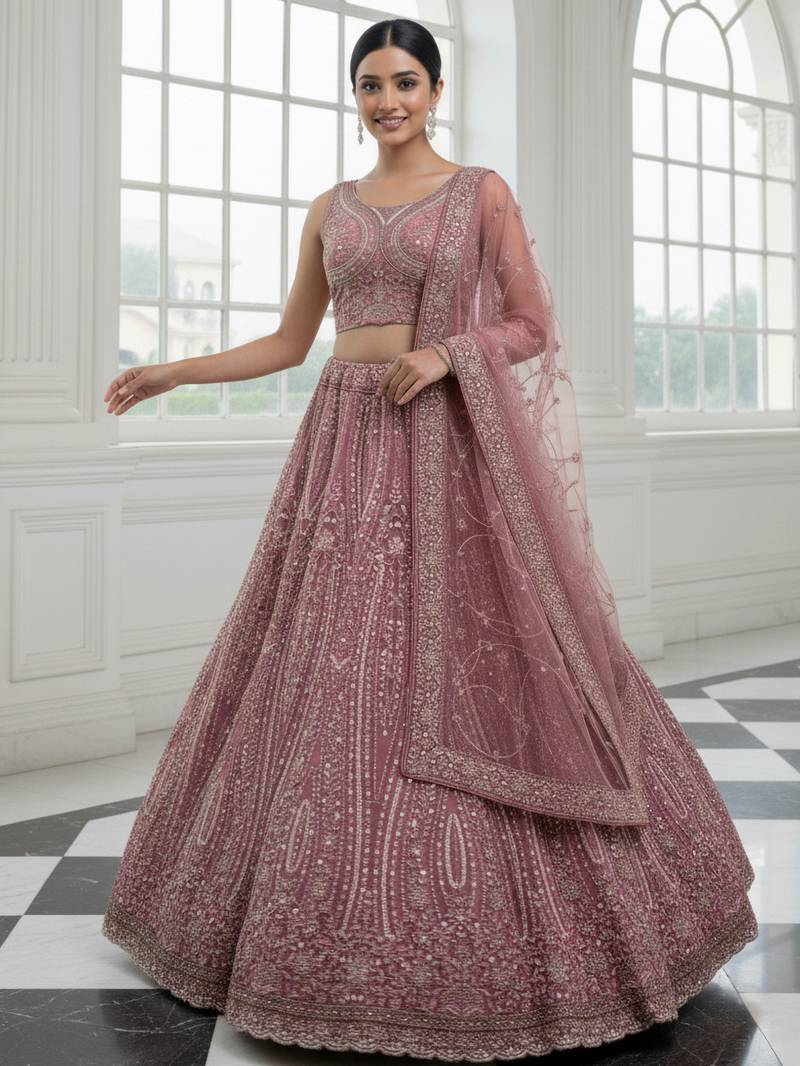 | Product Description | This Stunning Lehenga Set Is Crafted In Premium Net Fabric, Showcasing A Rich And Elegant Look. The Soft Pink Tone Enhances The Charm And Gives A Graceful Wedding Wear Appeal.