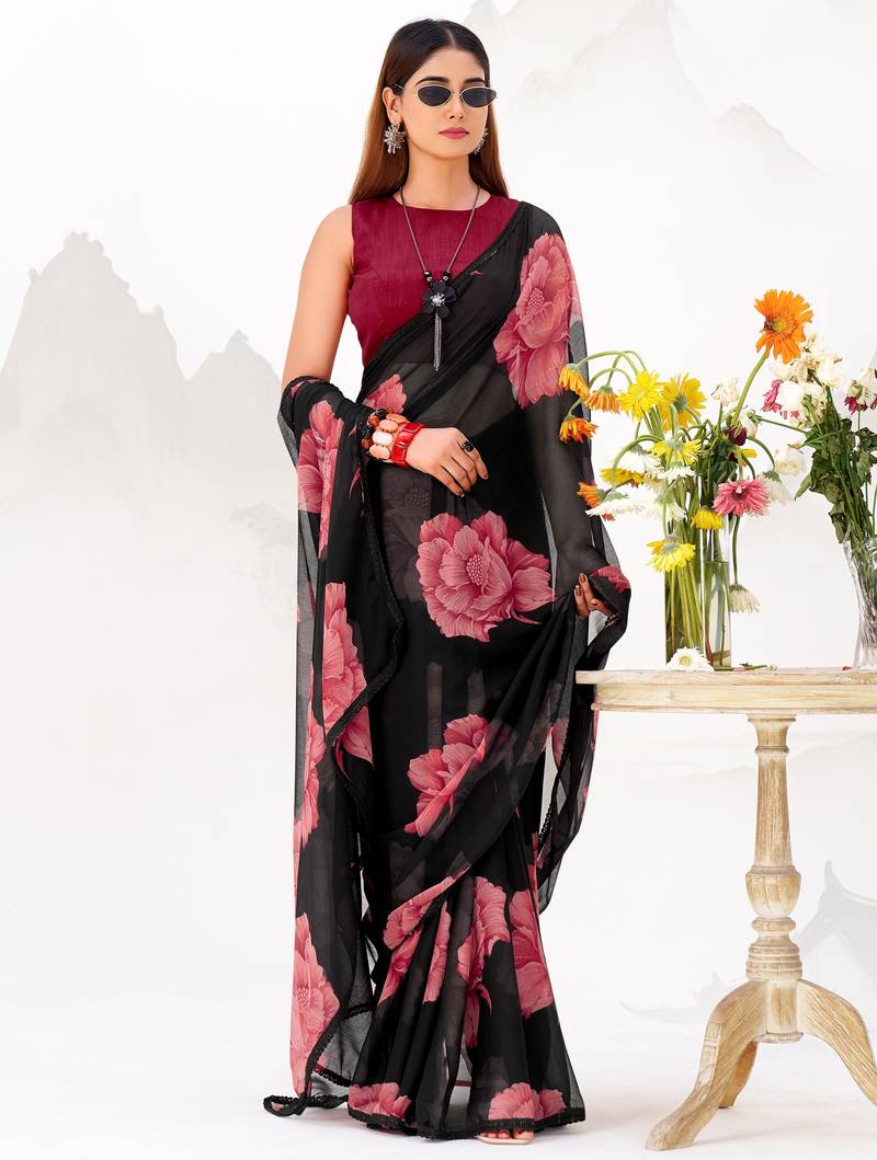 | Product Name | Dazzling Black Floral Printed Chiffon Casual Wear Saree With Blouse | |