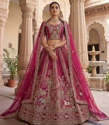| Product Description | The Lehenga Is Designed In A Rich Magenta Pink Silk Fabric, Beautifully Embellished With Fancy Embroidery, Shimmering Sequins, And Intricate Zari Work Spread Across The Entire Flare And Heavily Detailed Border. The Luxurious Craftsmanship And Traditional Motifs Enhance Its Royal Appeal, Giving The Lehenga A Grand And Elegant Bridal Finish.