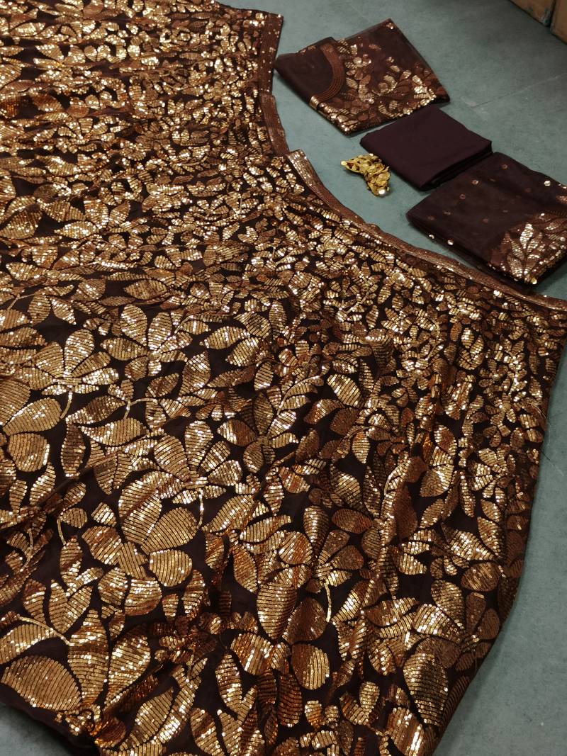 Product Name Brown Fully Sequins Net Lehenga Set Choli With Dupatta