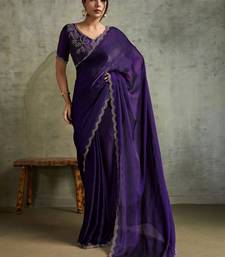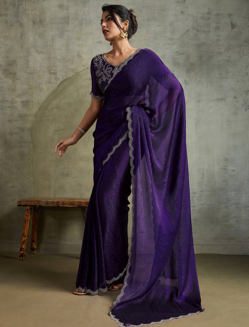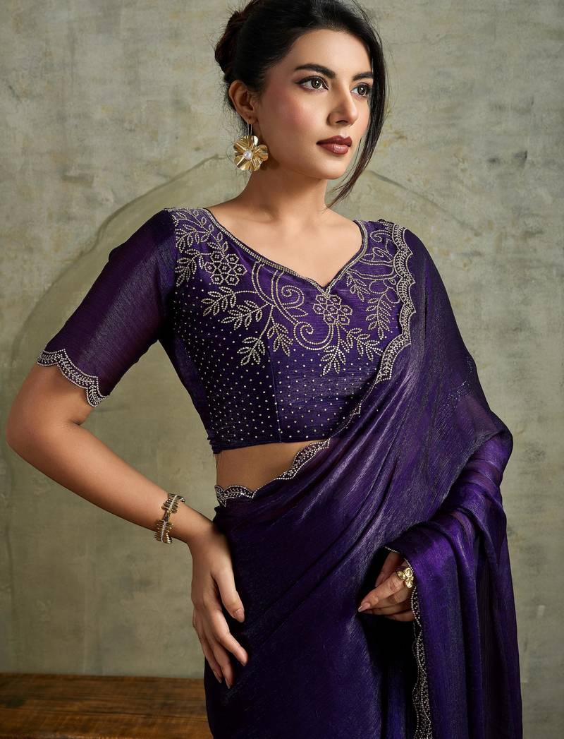 Elegant purple chiffon festive wear saree with diamond work blouse