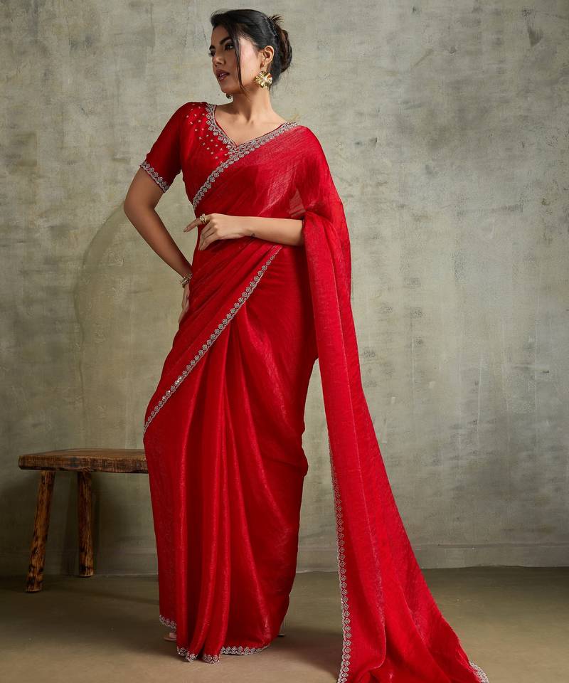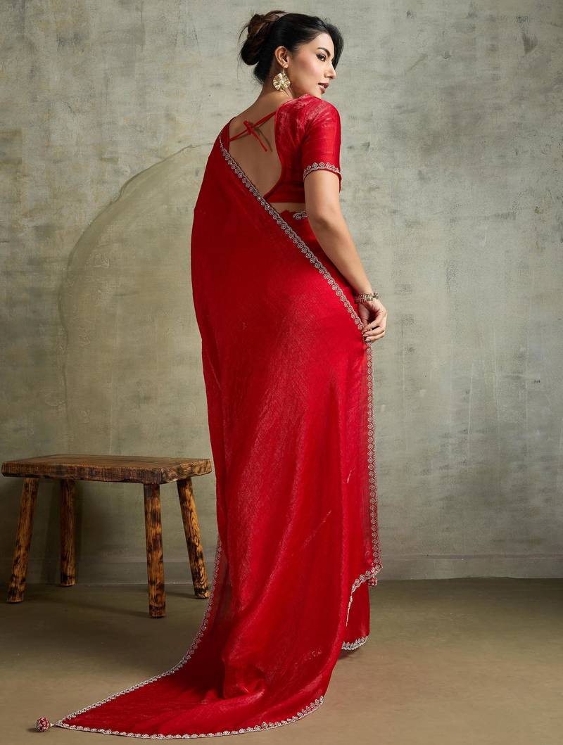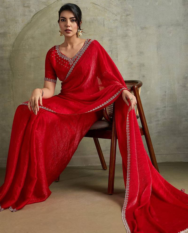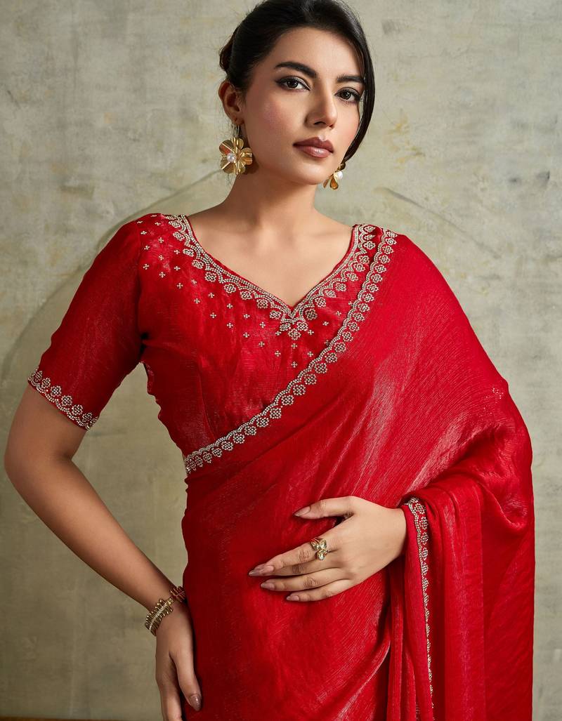 | Product Name | Fantastic Red Chiffon Wedding Wear Saree With Diamond Work Blouse | |