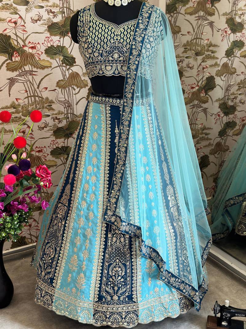 Premium designer teal & powder blue lehenga choli