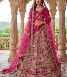 Lovely pink diamond work silk bridal lehenga choli with double dupatta