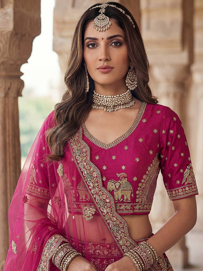 | Product Name | Lovely Pink Diamond Work Silk Bridal Lehenga Choli With Double Dupatta | |