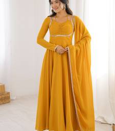 | Product Description | This Beautiful Yellow Gown Is Made From Georgette Fabric With A Rich 7 Meter Flair.&Nbsp;It Features A Fancy Designer Yoke With A Stylish Dori Neck. The Full Sleeves Add Elegance And Give It A Graceful Festive Look. The Gown Comes With A Comfortable Kurti Inner Made Of Soft Micro Cotton Fabric. The Dupatta Is Crafted From Georgette Fabric With Fancy Lace Border Work. Its Length Of 2.2 Meters Allows Easy Draping In Multiple Styles. The Gown Length Is Approximately 52 To 53 Inches For A Perfect Flow. This Complete Set Creates A Stunning And Elegant Ethnic Look.