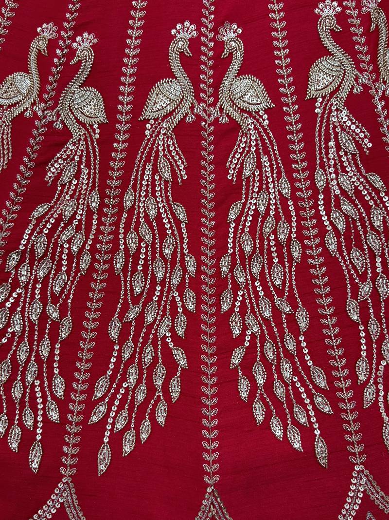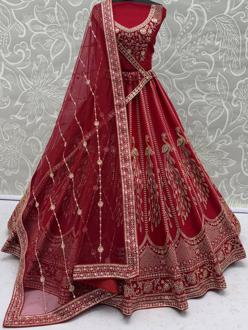 | Product Description | Featuring A Rich Deep Red Silk Lehenga, The Outfit Is Beautifully Enhanced With Intricate Gold Zari, Sequins, Crystal, And Multi Thread Embroidery Work, Giving It A Bold And Bridal Appeal. It Can Be Customized Up To 42 Inches For A Comfortable Fit.