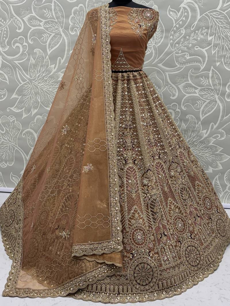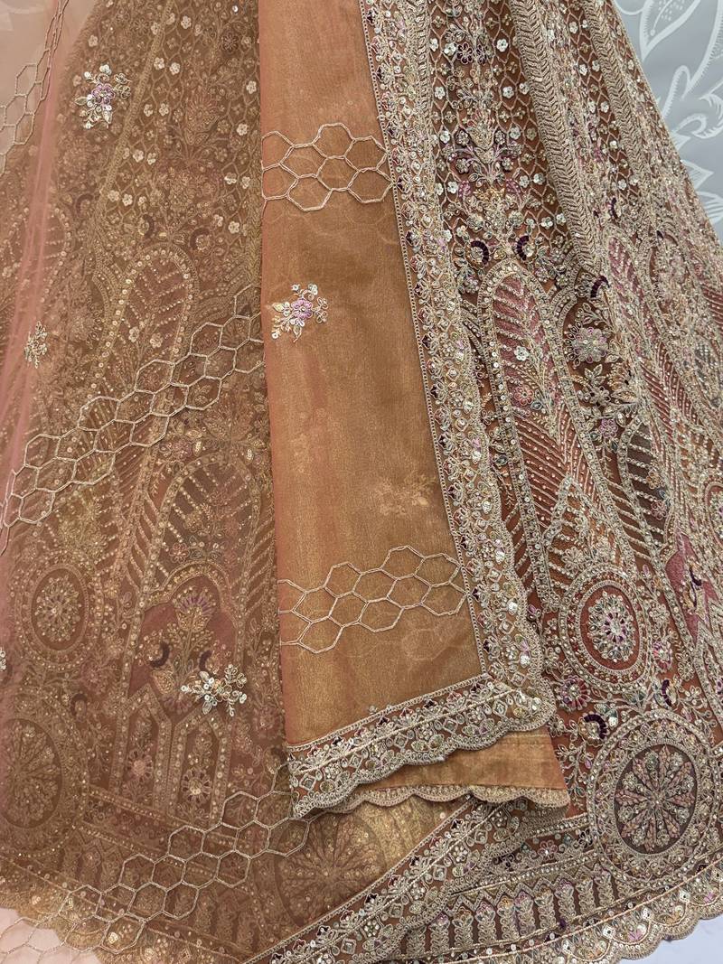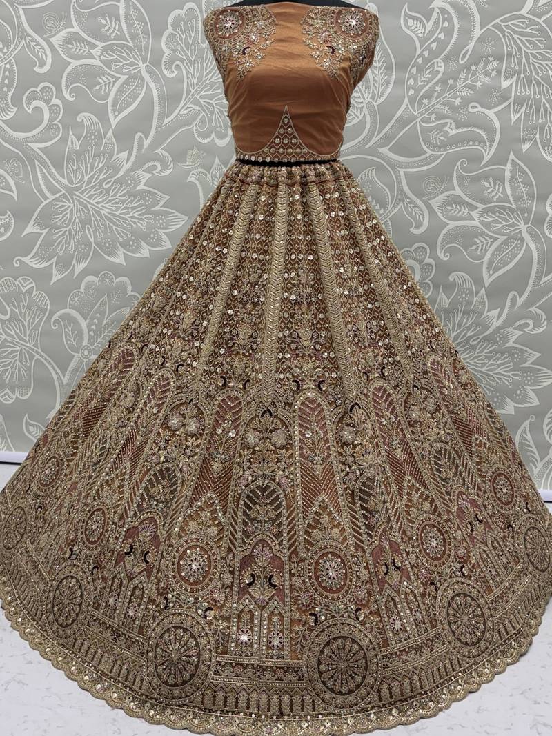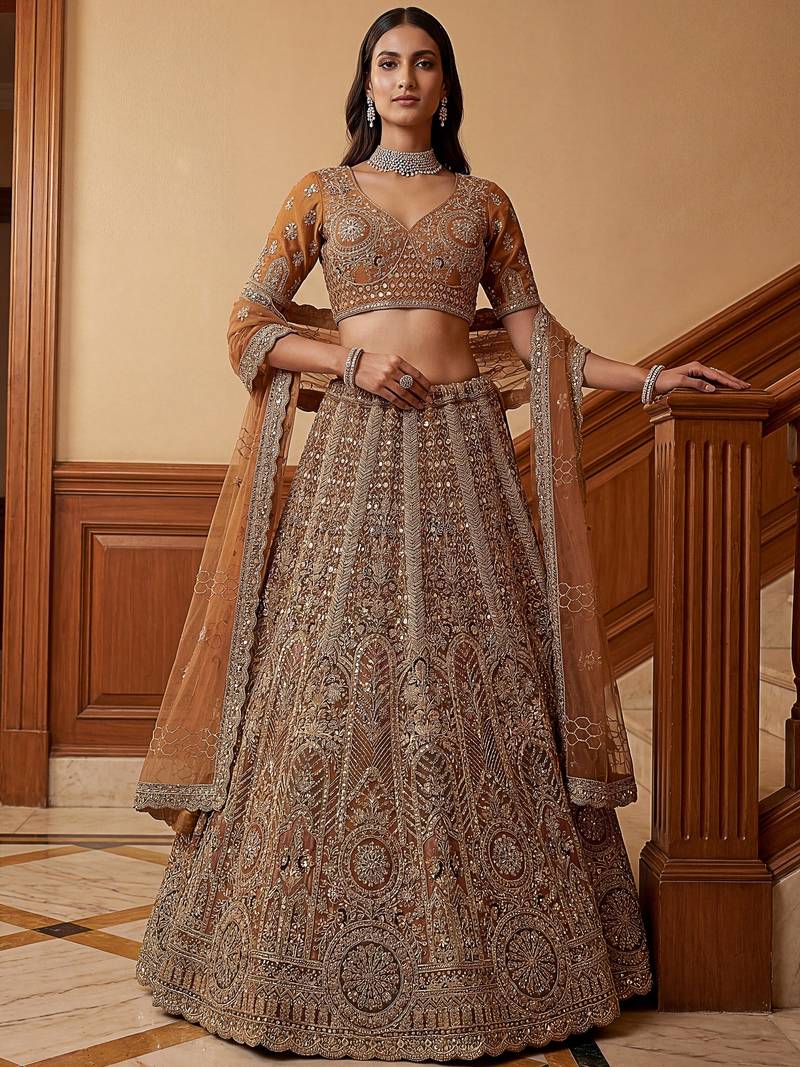 | Product Name | Sparkling Brown Multi Thread Work Net Reception Wear Lehenga Choli | |