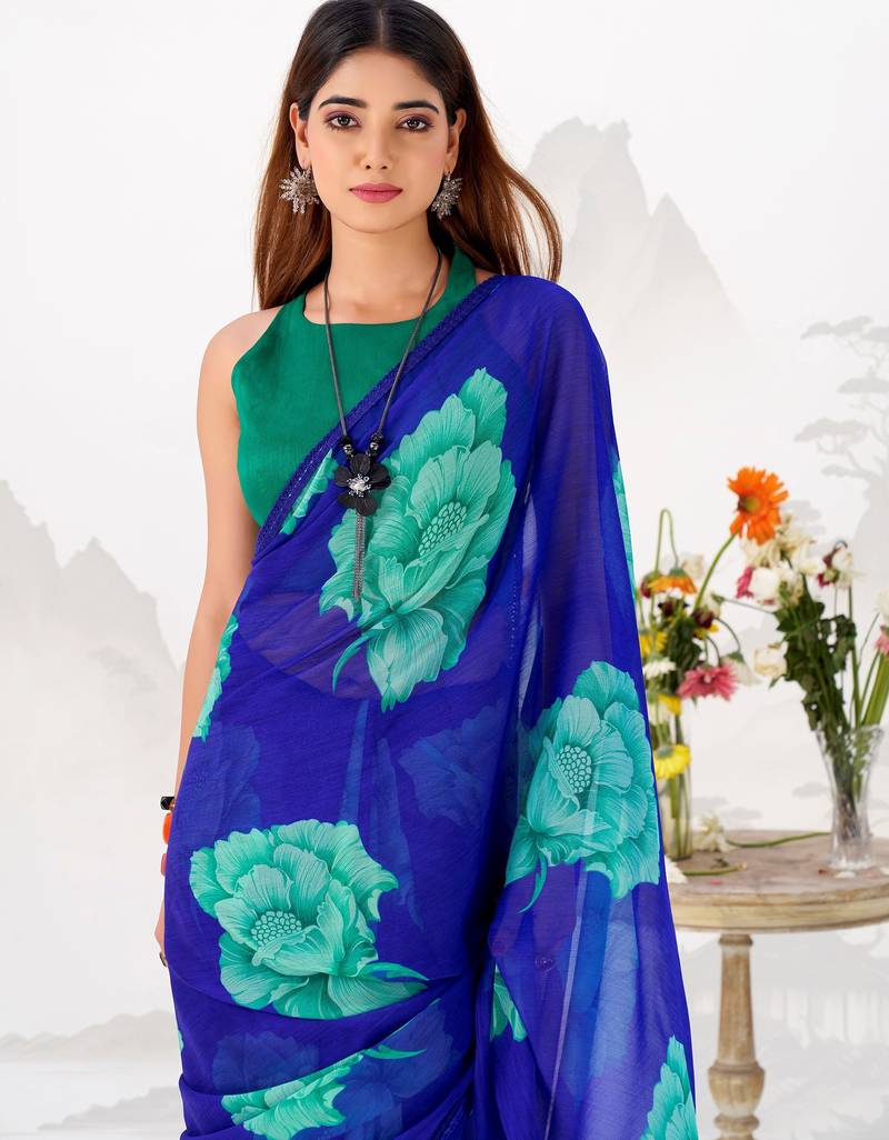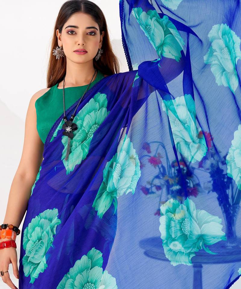 | Product Name | Stunning Blue Floral Printed Chiffon Office Wear Saree With Blouse | |