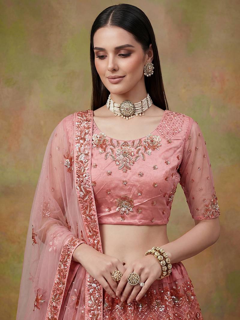 | Product Name | Superb Peach Sequins Net Reception Wear Lehenga With Blouse | |