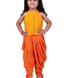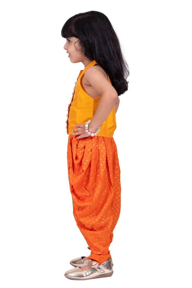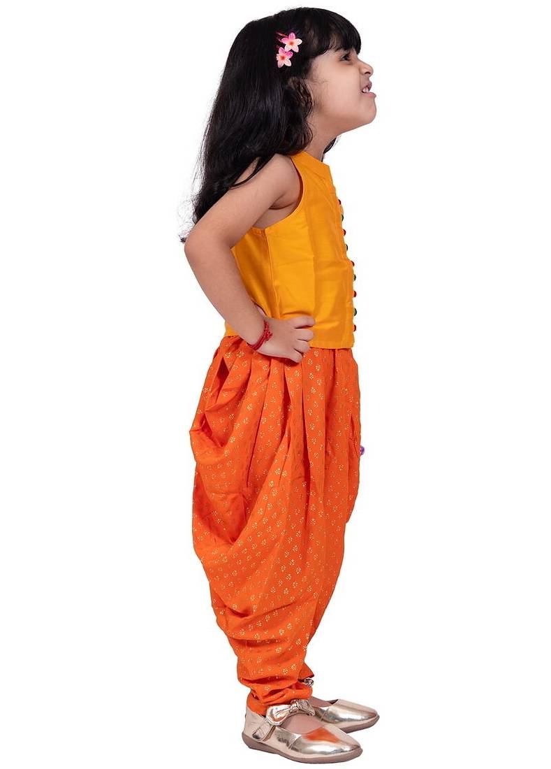 Product Name Chanderi Sleeveless Solid Top With Printed Dhoti Mustard & Orange