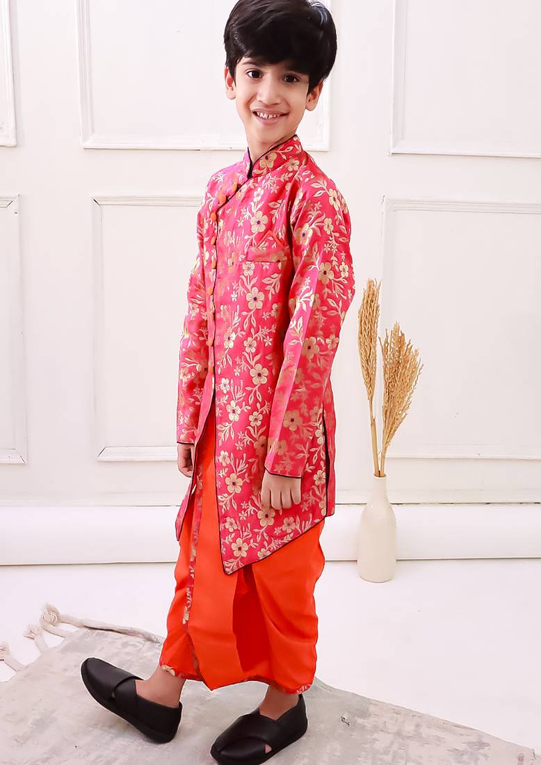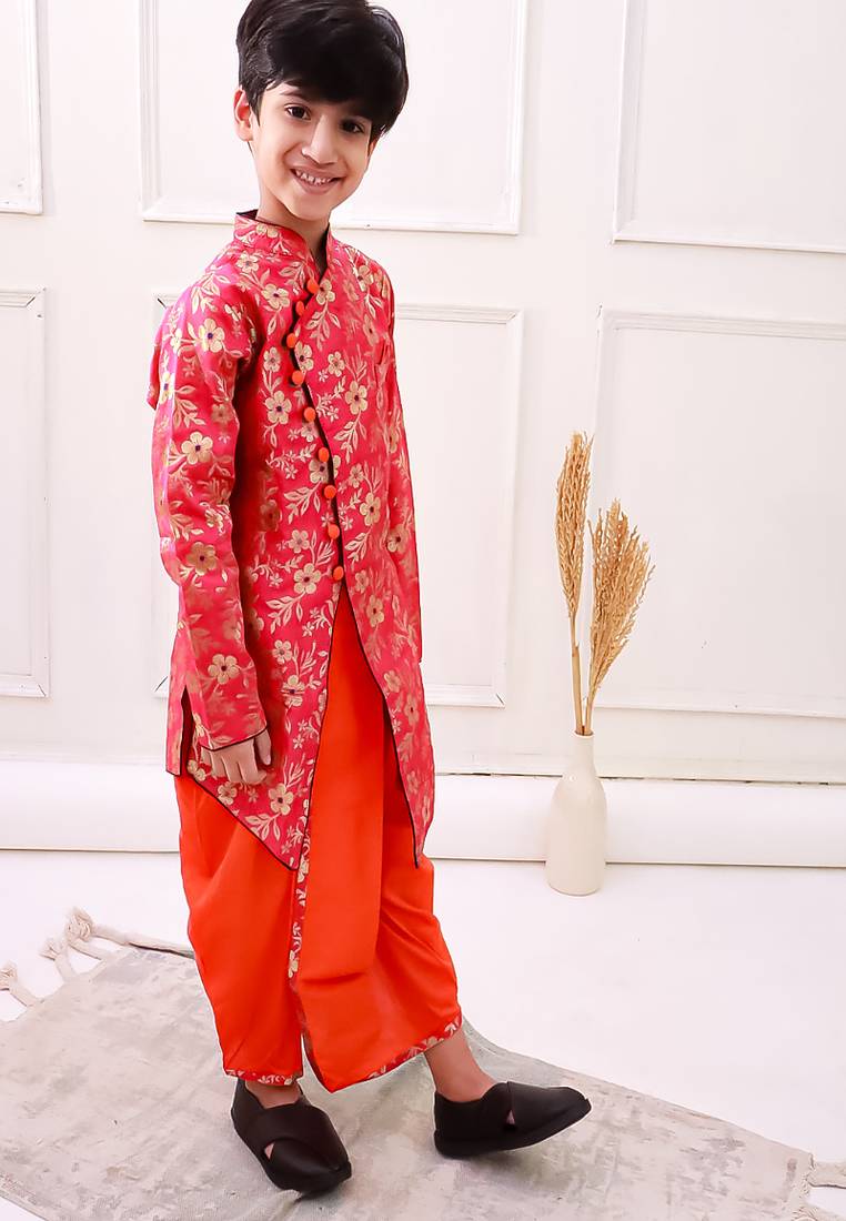 | Product Name | Brocade Fullsleeves Embellished Kurta With Dhoti Red & Orange | |