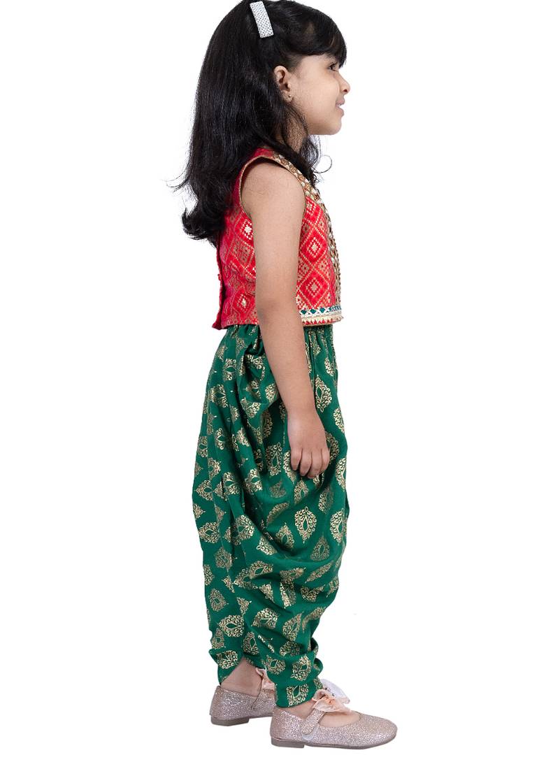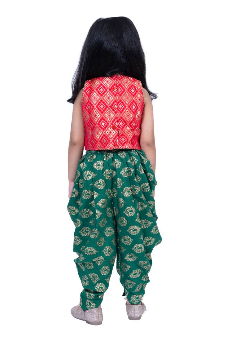 | Product Name | Brocade Sleeveless Embellished Top With Dhoti Red & Green | |