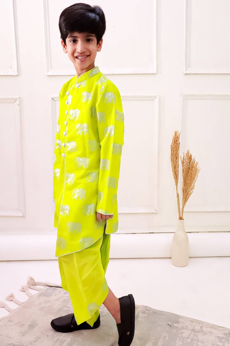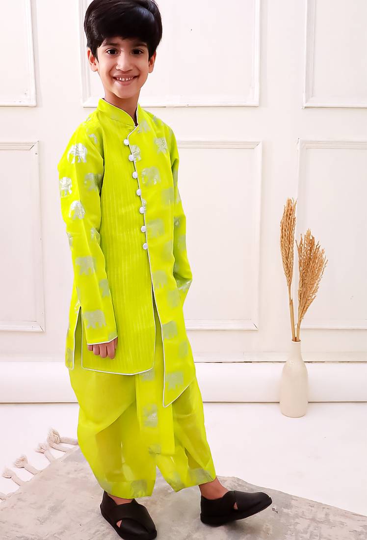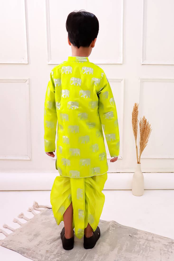 | Product Name | Chanderi Fullsleeves Elephant Printed Kurta With Dhoti Limegreen | |