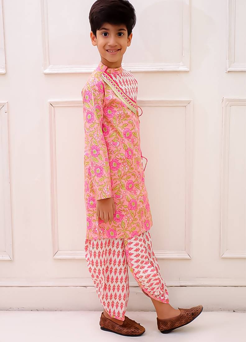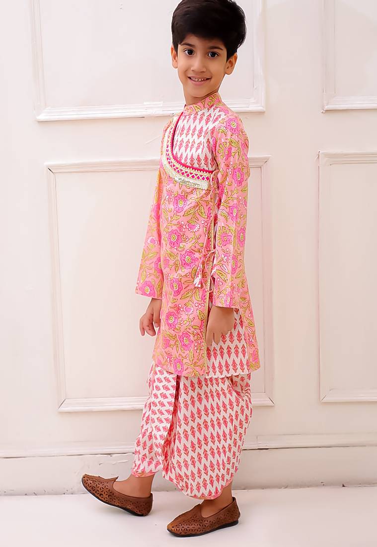 | Product Name | Cotton Fullsleeves All Over Printed Kurta With Dhoti Peach & White | |