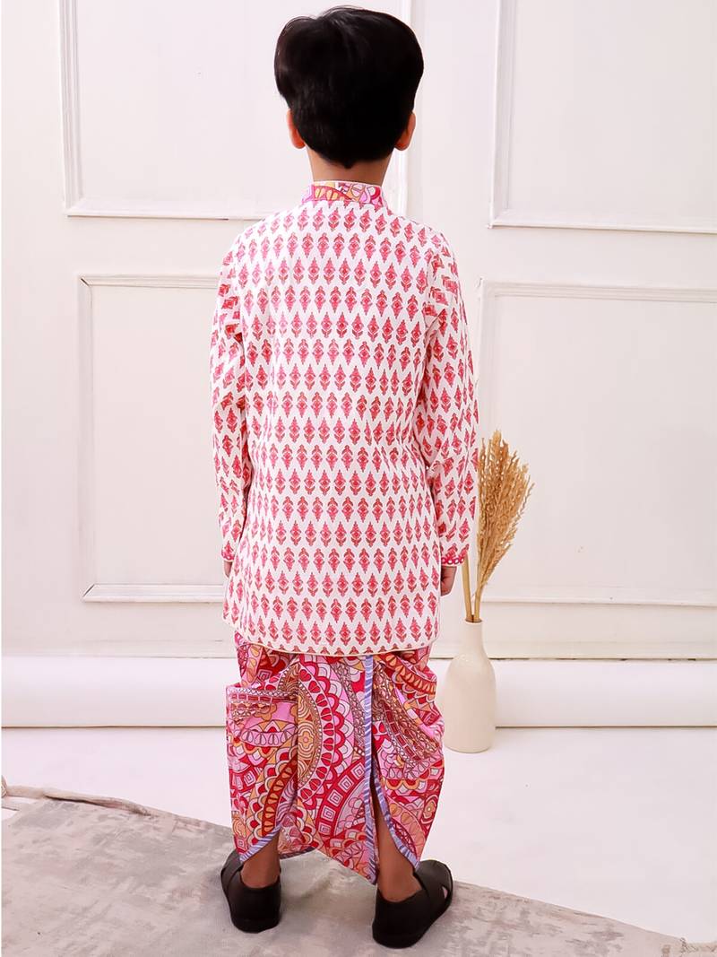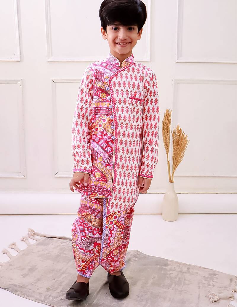 | Product Name | Cotton Fullsleeves All Over Printed Kurta With Dhoti Peach & White | |