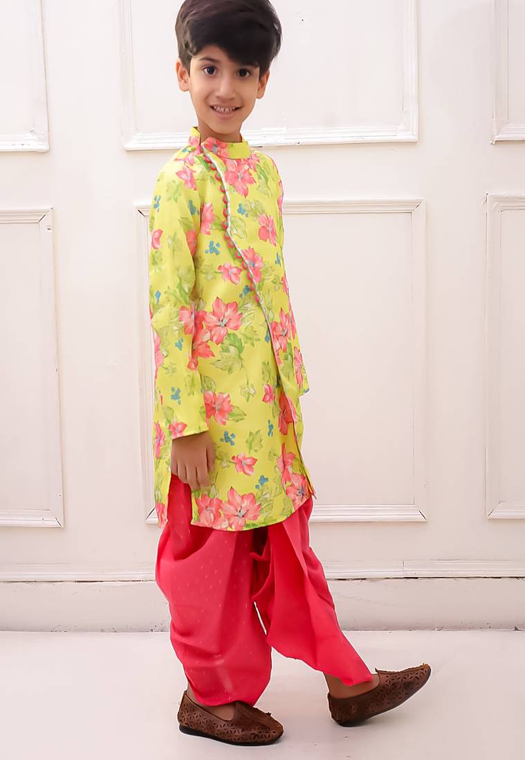 | Product Name | Cotton Fullsleeves Elephant Printed Kurta With Dhoti Yellow & White | |