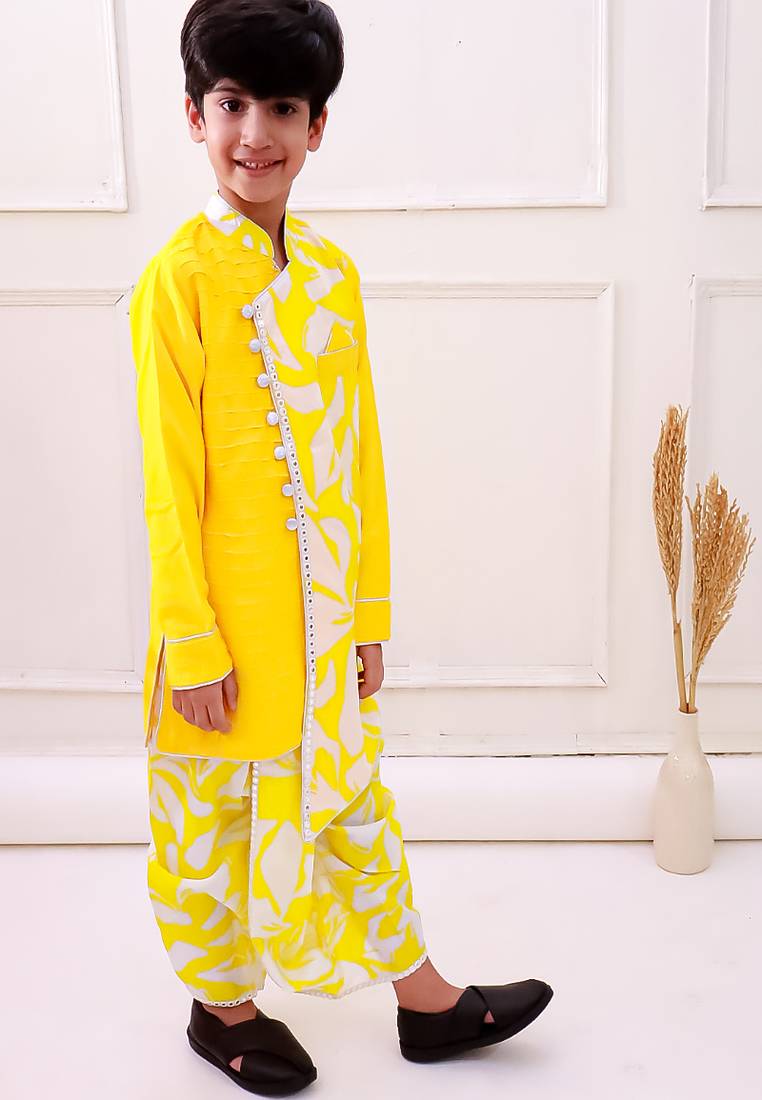 | Product Name | Cotton Fullsleeves Emblished Kurta With Dhoti Yellow & White | |