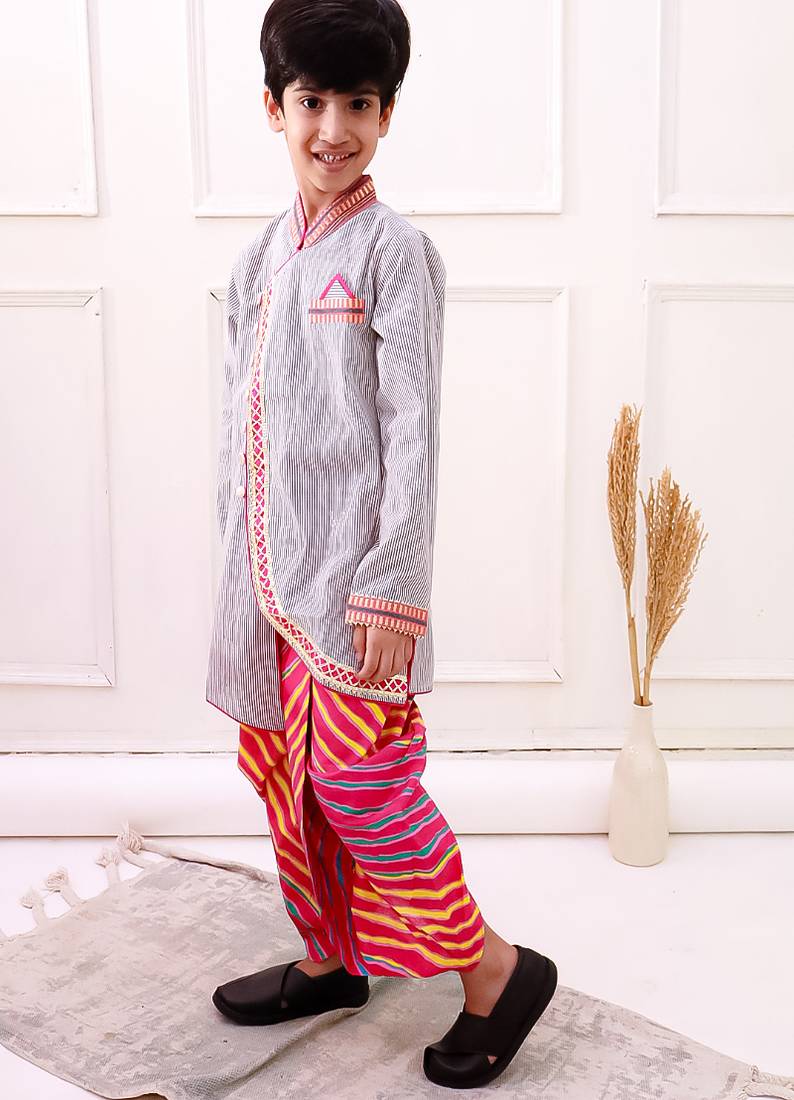 | Product Name | Cotton Fullsleeves Stripe Design Kurta With Dhoti Grey & Pink | |